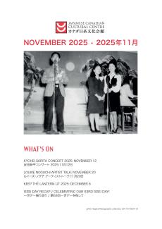 JCCCのニュースレターでは、近日開催予定のイベントについてや、その他日系・JCCC関連の楽しいニュースやコミュニティからの記事をご紹介しており、年間10回会員の皆様に配布されています。 皆様に気軽に楽しんでいただけるよう、オンライン版のニュースレターを一般公開しています。 ご興味のあるかたは、下記のボタンからご覧ください。 状況の変化により、ニュースレター内の一部スケジュールを変更させていただく場合がございます。何卒ご理解賜りますよう宜しくお願い申し上げます。