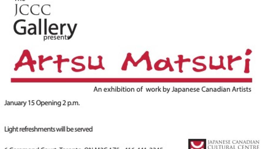 Artsu Matsuri is a community based exhibition celebrating art in the JCCC community. This exhibition features the works of 25 artists: Katherine Adachi, David Bernhard, Kumiko Claros, Ruben Claros, Lois Fuse, Barbara Miiko Gravlin, Gerry Yumiko Hewson, Roslyn Levin, Gloria Kagawa, Tsutao Machida, Kai Morrison, Kaz Ogino, Harvey Okawara, Maryam Poozaki, Nancy Peng (Yamada), Michelle Ramos, Irene Sakata, Keiko Shintani, Ken Sugamori, Naomi Tsuji-Tamaki, Jerrold Tanaka, Kayoko Tanaka, Mui-Ling Teh, Rita Wong, and Hiroshi Yamamoto.