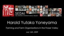 This month, Sedai features an interview with Harold Yutaka Yoneyama, whose family owned a farm in Haney, BC in the Fraser Valley prior to WWII. Harold describes his family farm and the prosperity it brought, as well as farm organizatoins including the Haney Nokai (Japanese Farmers Association).